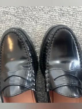 J Crew Winona lug-sole penny loafers in black spazzolato leather