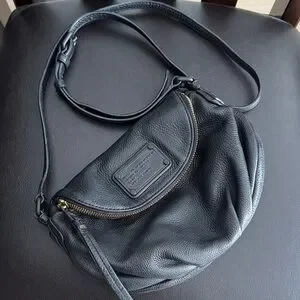 Marc Jacobs Black Pebbled Leather Crossbody Bag with Gold Hardware