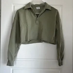 Aritzia - Sunday Best - cropped fleece polo sweater - green