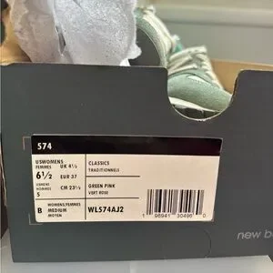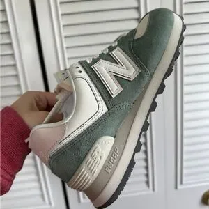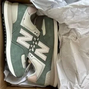 New Balance 574 women’s sneakers. In sage green colorway. Brand new in box. Never worn.