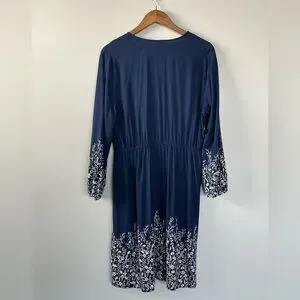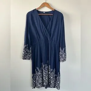 Old Navy Navy Floral Faux Wrap Dress Boho Coastal Size L