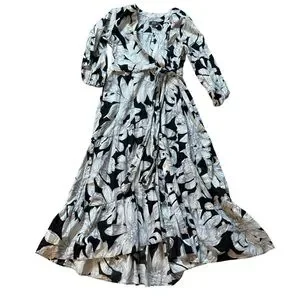 Anthropologie Maeve Puff Sleeve Midi Dress Belted Toe Waist Sz 12