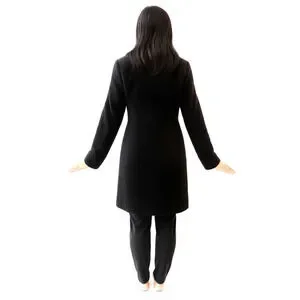 Length & Collar: Mid-thigh fit with shawl/lapel collar