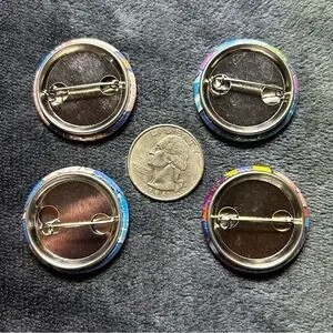 Each button was made by me using repurposed materials.
