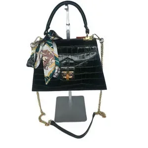A luxurious and versatile Italian-made handbag with chic croc texture, perfect for fashion-forward everyday use or elegant evening wear.