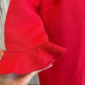 Classy and simple with a hint of ruffle sleeve to add elegant to this beautiful red dress. Perfect for the holidays or special occasions. Price to sell &firm. New without tag.