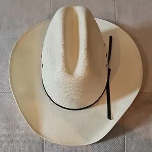 Lightweight cowboy hat styled for women. Features a simple black hatband for a clean, classic contrast. Breathable woven construction for all-day comfort and casual wear. Great for rodeo or equestrian.