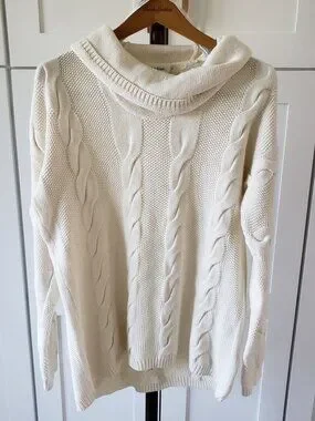 Calvin Klein Sweater Womens M White Fisherman Knit Pullover