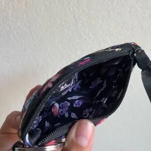 NWOT Vera Bradley Foxwood Floral Quilted Black and Purple Wristlet Cardholder