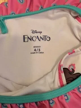 Disney Encanto Pink Floral Girls Swimsuit with Teal Trim
