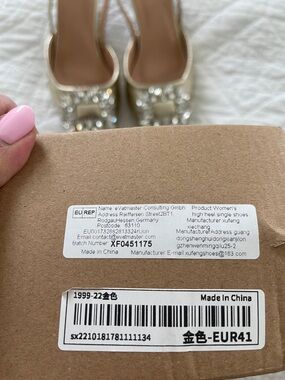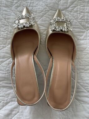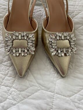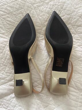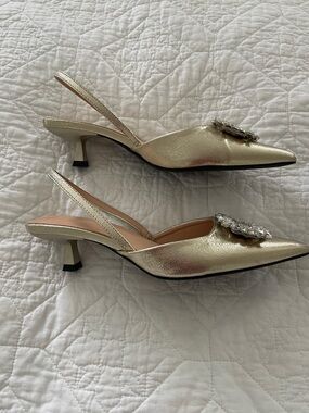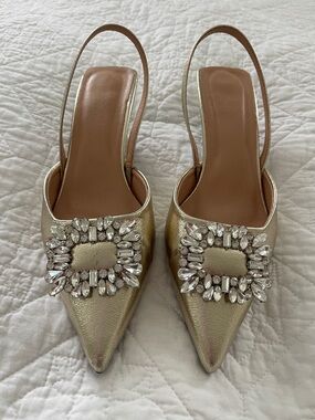 Gold Embellished Pointed-Toe Slingback Pumps size 9