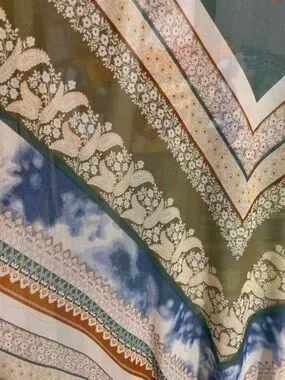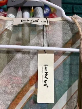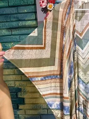 Three Bird Nest Olive Multi Chevron Kimono Cardigan semi sheer ruffled NWT s/m