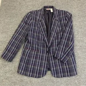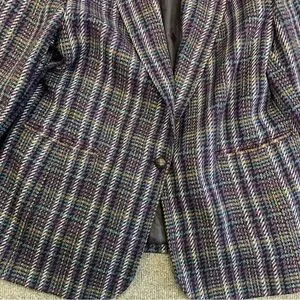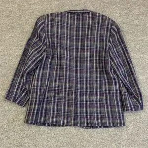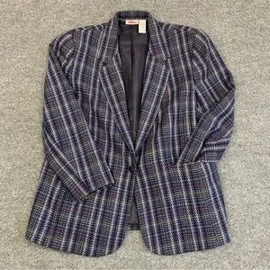 This Y2K era single closure blazer features a striking multicolor plaid pattern. Ideal for dressing up or down.