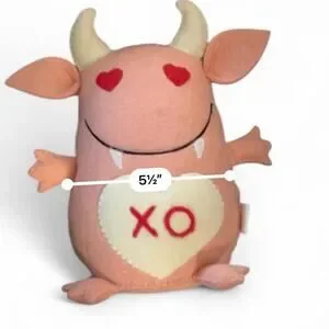red, cream, felt, heart, hearts, XO, fangs, horns, heavy bottom, plushie, plush, monster, cute monster, kawaii, cute, creepycute, cutecore, cutegoth, adorable, gift, date night, anniversary, Valentines, Valentine’s Day, Galentines, besties