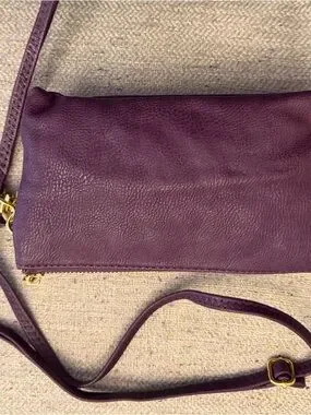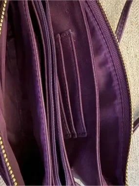 Tory Burch Deep Plum Leather Crossbody/Wristlet with Gold Logo