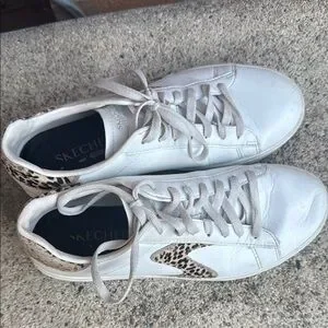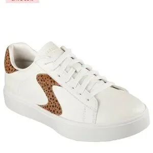 Step out in style with these Skechers women's sneakers, featuring a chic white design with eye-catching leopard accents. Perfect for casual outings, these shoes offer both comfort and fashion.