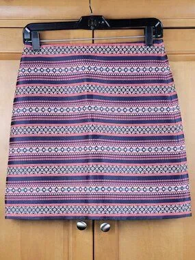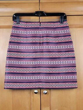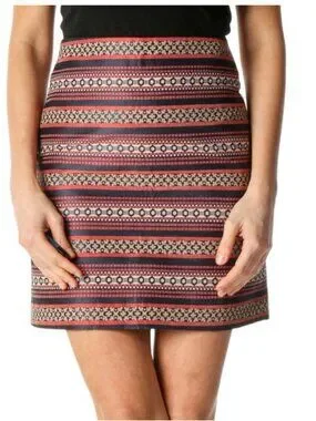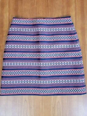 LOFT Coral Navy Gold Tan Aztec Stripe Cotton Blend A-line Mini Skirt - 2P