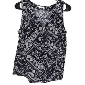MAURICES Women’s Zip Neck sleeveless Blouse. Black & White SIZE MEDIUM