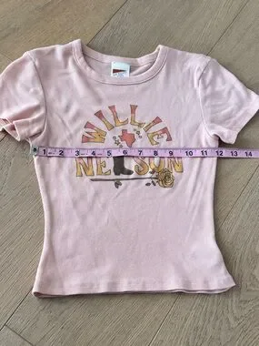 AE Band Tee Willie Nelson Pink Graphic Crop Tee XSmall