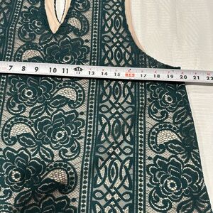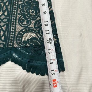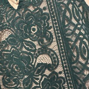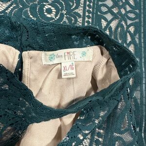 love, Fire Dark Teal Floral Guipure Lace Top with Keyhole Back EUC
