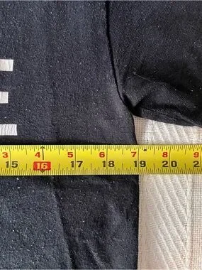 No tags but seems to be size S. This is listed as a women’s t-shirt but it’s really Unisex so anyone can wear it. Please see measurements in photos.