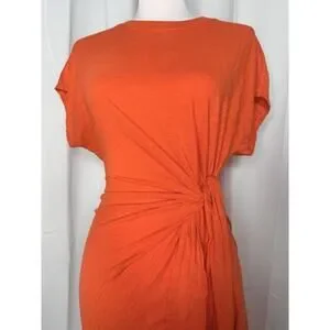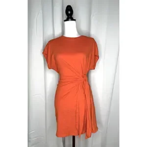 Apiece Apart Nina Cinched Waist Dress Orange Midi Wrap Organic Cotton Flambe