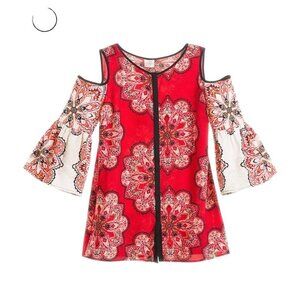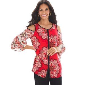 Chico’s Tiled Spice Cold Shoulder top Blouse size 1 M/8