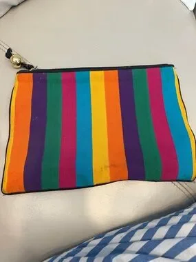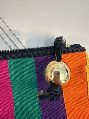 Vintage Fendi Bright multicolor striped canvas pouch. Zip closure with decorative tassel and gold bead. Compact and vibrant accessory. Great for organizing essentials.