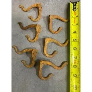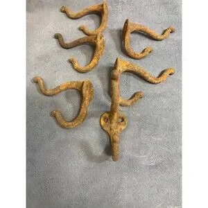 6 rusty old wall coat/hat hooks.
