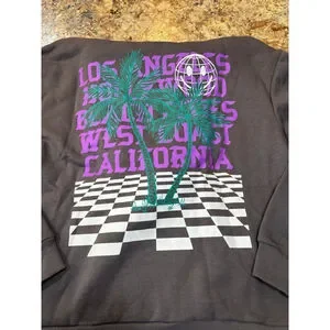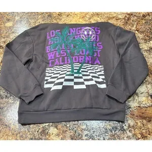 Hybrid Apparel “Los Angeles California” Palm Trees Checkerboard Crewneck