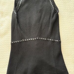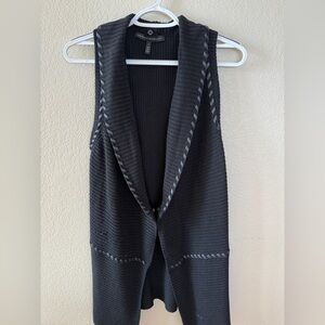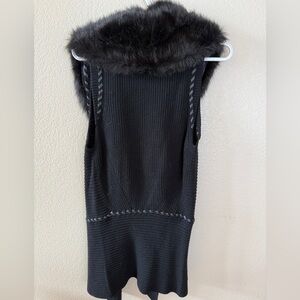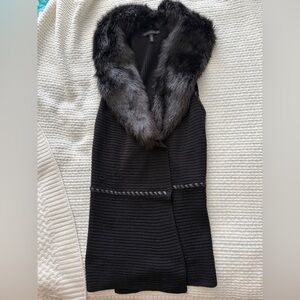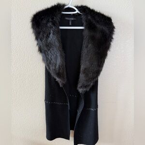 White House Black Market Black Faux Fur-Trim Sleeveless Knit Vest