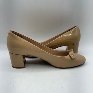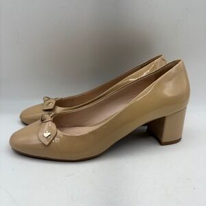 Kate Spade New York Beige Patent Leather Bow Block Heel Pumps Size 7M