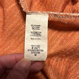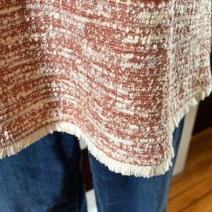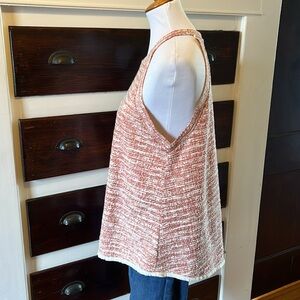 W5 halter top with beautiful peachy orange and white textured fabric featuring fringe detail along the hem.