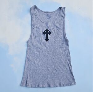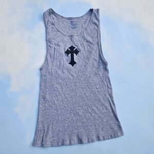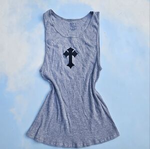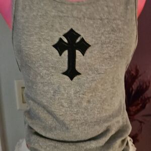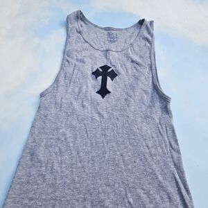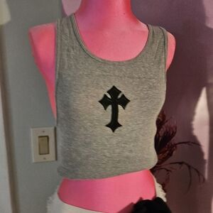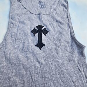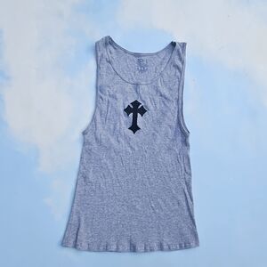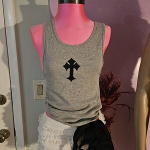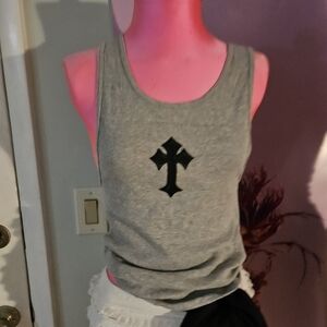 Grey Tank Top Goth Cross Chrome Hearts Looking Top