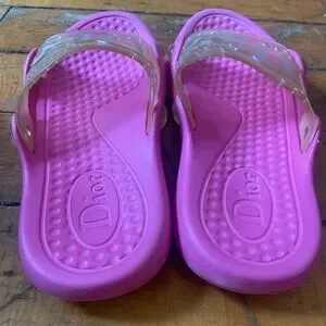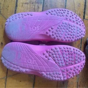 vintage y2k dior hot pink slides in fair to good pre-worn condition. the soles are worn & there are minor scratches. marked a 38, fits a 7-7.5 ladies.