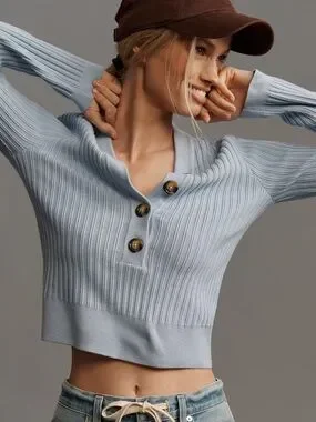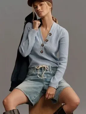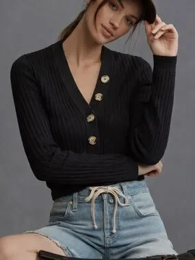 Anthropologie Pilcro black Kassidy ribbed deep v neck sweater