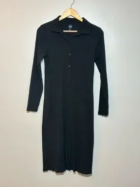 GAP Black Button-Front Long Sleeve Midi Dress Size Women’s Medium #cbk #chic