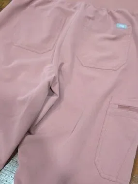 Figs medical tech scrubs in size M/T medium tall. Lots of pockets, very comfy. Blush pink in color.