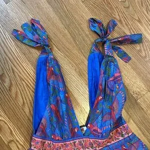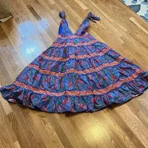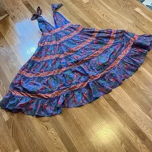 Farm Rio Size Small Blue Macaw Flight Midi Dress Tiered Size Medium NWT