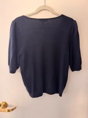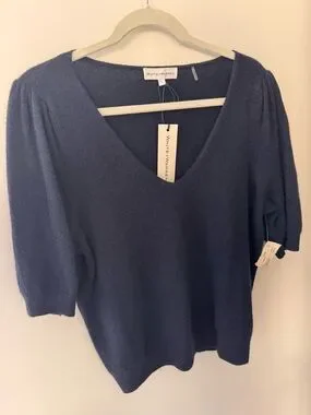 White + Warren V-neck short sleeve sweater. Short puff sleeves with ribbed cuffs. 100% Cashmere. Size large. Brand New with tags