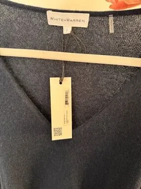 White + Warren Navy V-Neck 100% Cashmere Top - Size Large - Brand New with tags