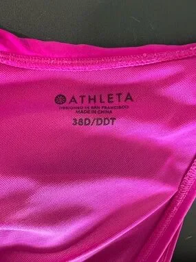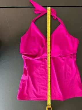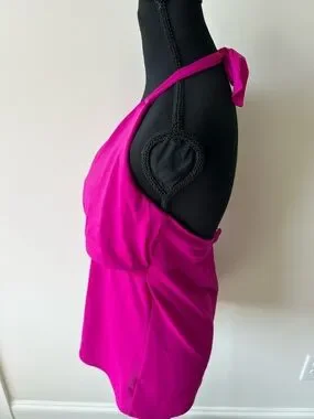 Athleta Womens Faux Wrap Tankini Top Pink Stretch Halter Neck Tie 38D/DDT