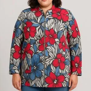 Afred Dunner women's cotton blend floral print zip up blazer jacket, size 16