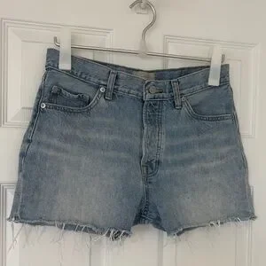 EVERLANE The Relaxed 90’s shorts button fly 5 pockets raw edge hem light blue (sun bleached blue?) size 27