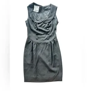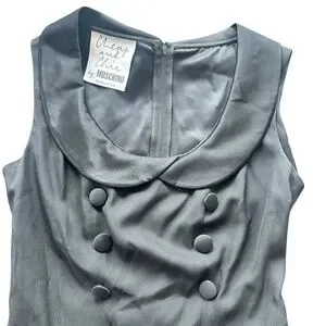 Chic Moschino mini dress in black. Features a double-breasted front. Sleeveless with a stylish collar.