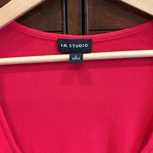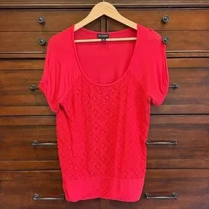 I.N. Studio Women's Red Scoop Neck Textured Top Blouse Size Large EUC Casual