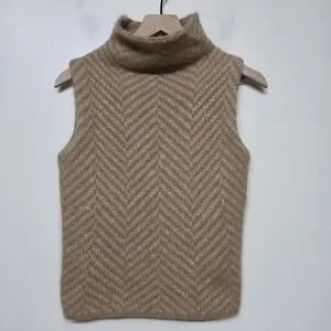 Ralph Lauren Sport Sweater Vest Women's M Brown Mohair Wool Blend Turtleneck
