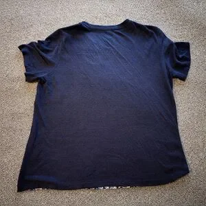 Tory Burch Silk Front Linen Top Bird Print Short Sleeve Blue Graphic Blouse L