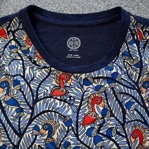 The standout feature is the artistic bird and foliage print, adding a bold yet refined touch. With rich blue tones and pops of red, this top embodies a resort-ready, tropical aesthetic while remaining versatile enough for everyday wear.