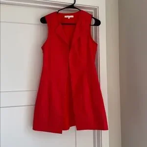 Sleek sleeveless mini with a front button placket. Fitted through the waist for a flattering silhouette. Minimal neckline and clean lines for a modern look. Lightweight fabric ideal for day-to-night styling.